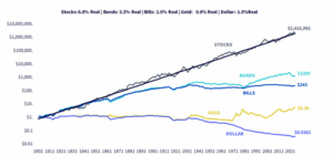 - Poor long-term returns: Over time, equities and bonds have significantly outperformed gold, while providing income along the way.